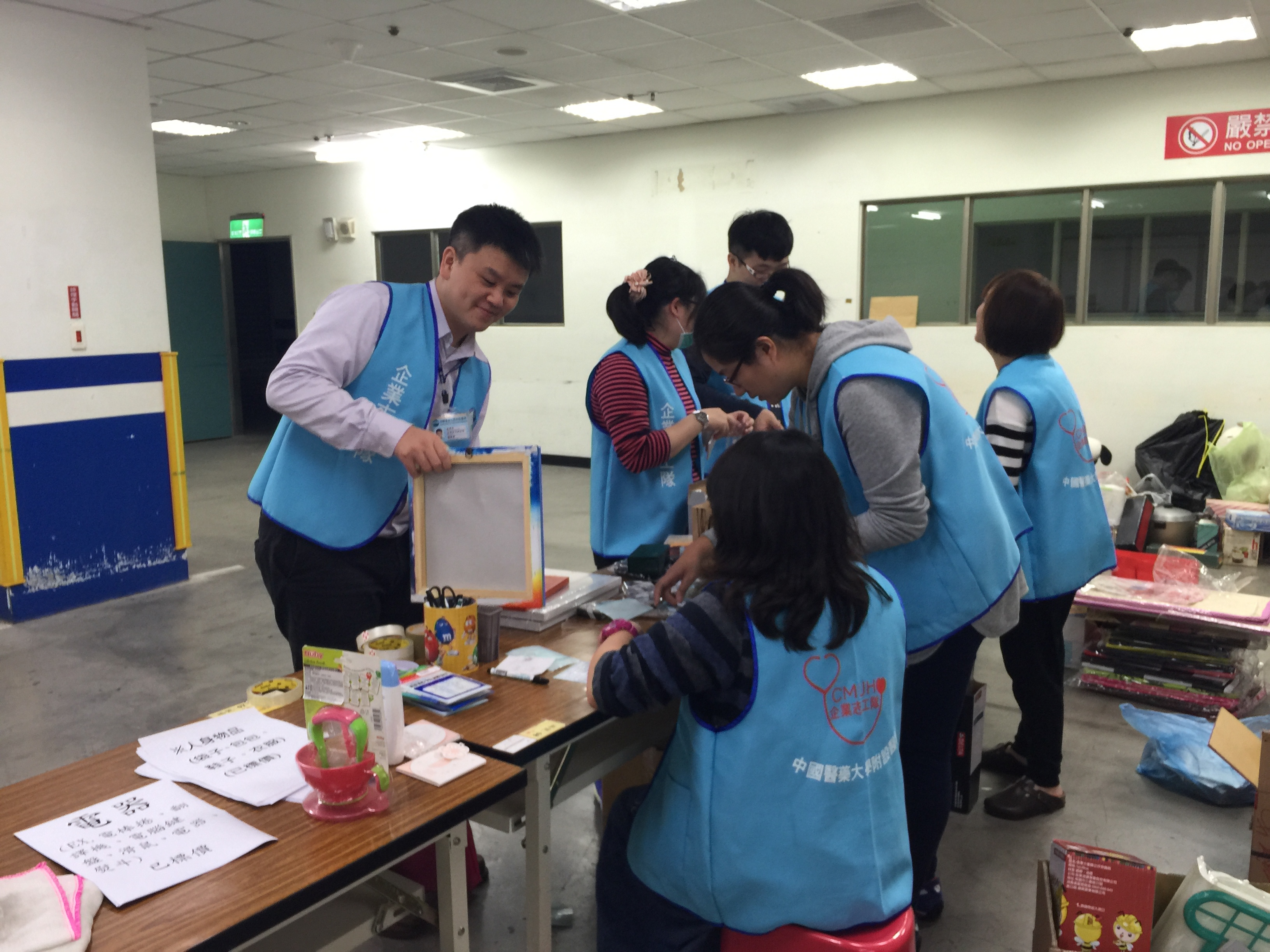 中國附醫企業志工們著手整理所募集到的義賣物資,